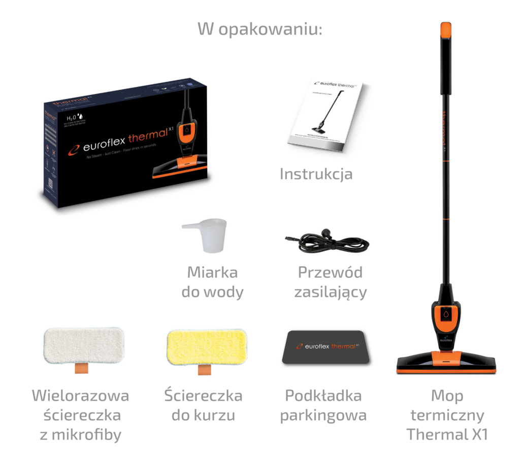 Znacznie więcej niż zwykły mop parowy, Euroflex Thermal X1 czyści w ciągu kilku sekund wszystkie rodzaje twardych podłóg, wykorzystując technologię egzotermiczną (120° C).